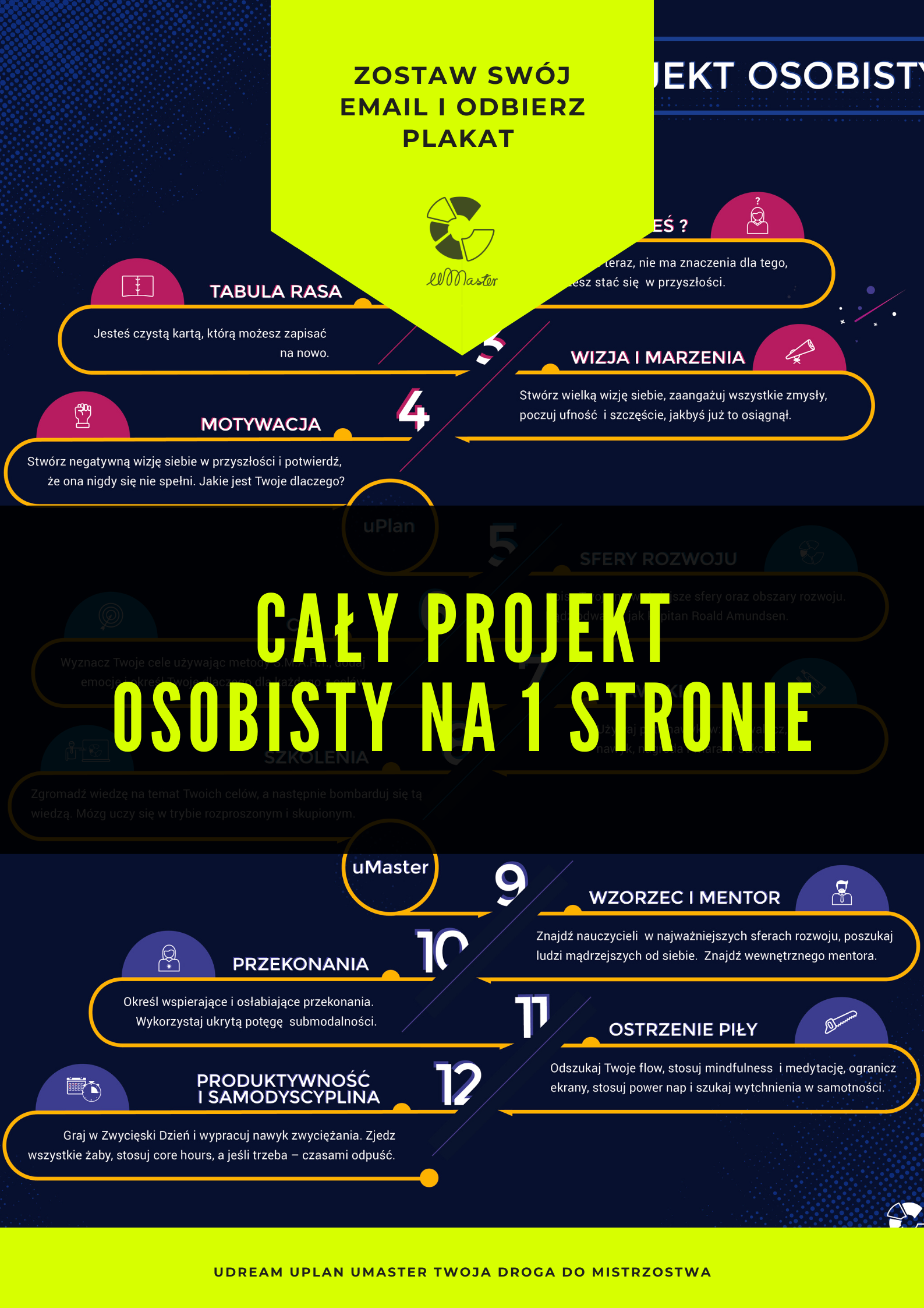Zapisz się do wewnętrznego kręgu uMasters! Jako prezent powitalny otrzymasz plakat, dodatkowo prześlę Ci szablon Zwycięskiego Dnia - mój prosty i sprawdzony sposób na efektywność oraz film z konferencji HR2022.pl : "Dlaczego warto skończyć z rozwojem osobistym i przejść do realizacji projektów".